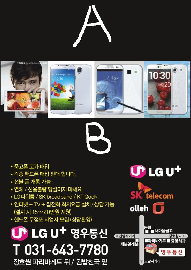 A : 최신 LTE폰(노란색)