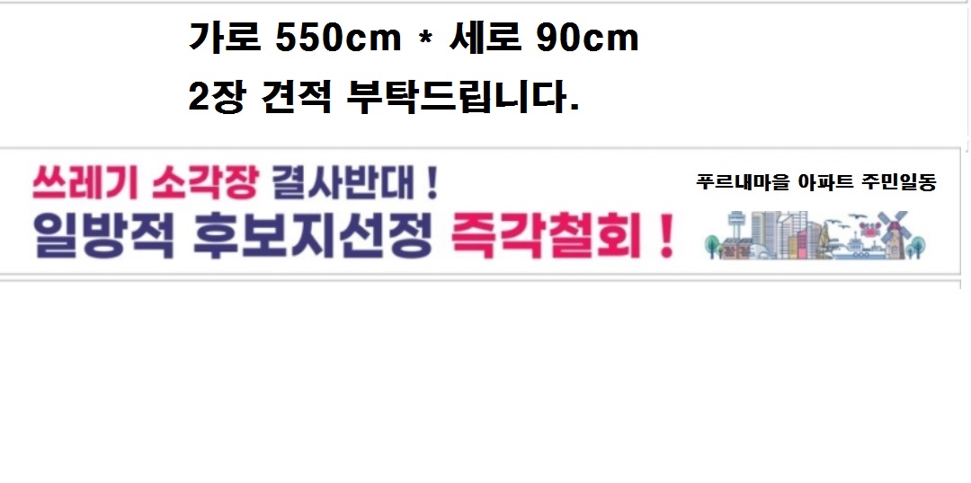 현수막크기및수량:5.5 x 0.9 현수막내용: 첨부파일 핸드폰번호(필수):010-2668-9722 *메일로 부탁드립니다* 현수막마감:나무 끈 *나무끈,타공,줄미싱,절단등* 택배주소: 입금자명: 입금계좌:수협 111-02-080098 김은